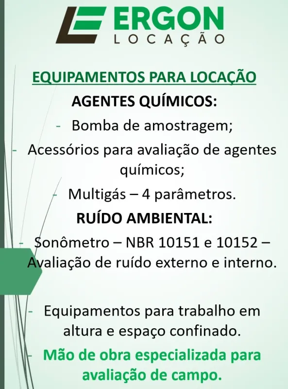 A Ergon Consultoria, especializada em Saúde e Segurança do trabalho, oferece serviços de alta qualidade e confiabilidade, incluindo a locação de equipamentos de medição.