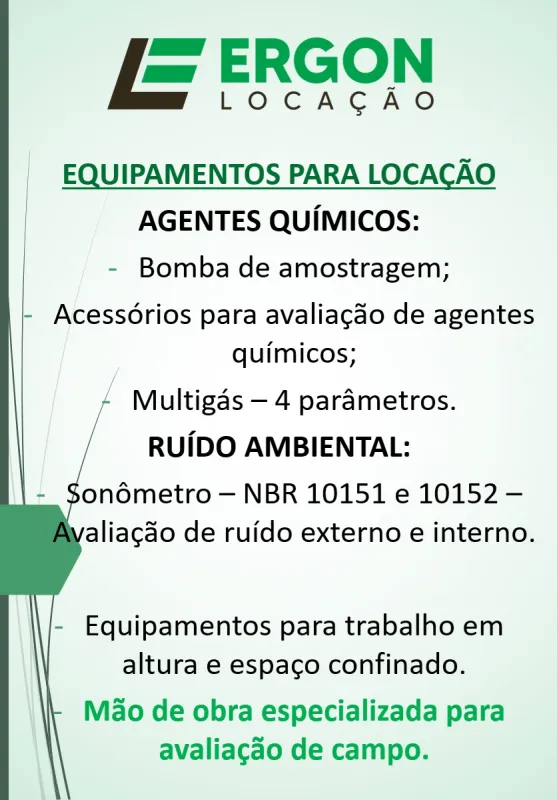 A Ergon Consultoria, fundada em 2016, é especializada em Saúde e Segurança do Trabalho, oferecendo serviços como treinamentos, laudos, programas, levantamento de riscos, eSocial e análise ergonômica do trabalho.